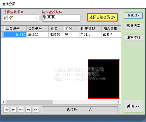 ②通过点击列表按钮,显示会员列表,找到对应会员点击鼠标左键选择。